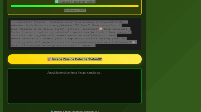 🔎 Zi Normală la Detecție — Cu un detector într-o mână și cod în cealaltă Toată lumea mă întreabă: „Ștefane, da’ tu când ai timp de toate? Lucrezi în IT?” Nu. Nici nu vreau. Dar dacă tot am stat atâtea zile prin păduri cu detectorul, m-am gândit să scriu ceva… pentru sufletul meu. Și pentru cine mai vrea să înțeleagă cum e să fii între două lumi: una cu if […]